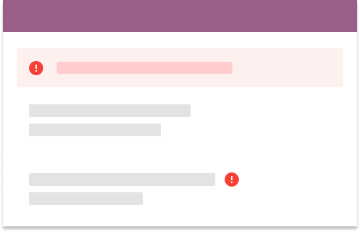 Error summaries should appear at the top of the page and use an alert component. Use them in forms or for page-level errors that are not associated with a specific component or location on the page.