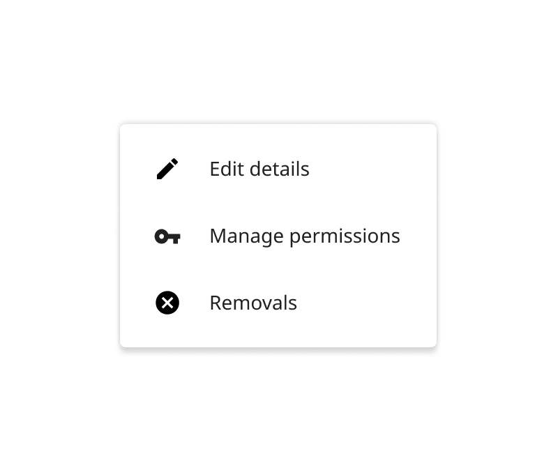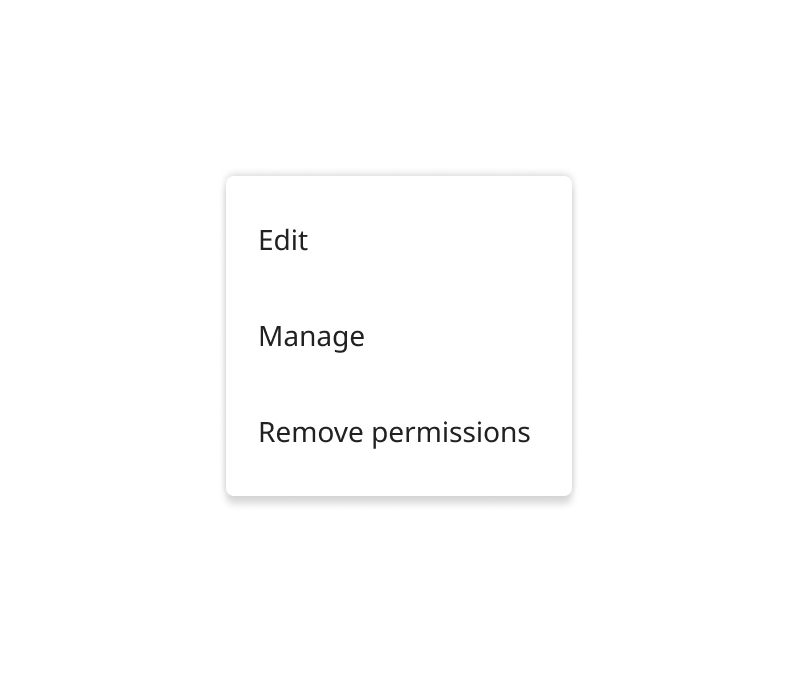 Allow users to discover and access complex actions. They can be generated from buttons, icons, and in some cases by right-clicking a location.